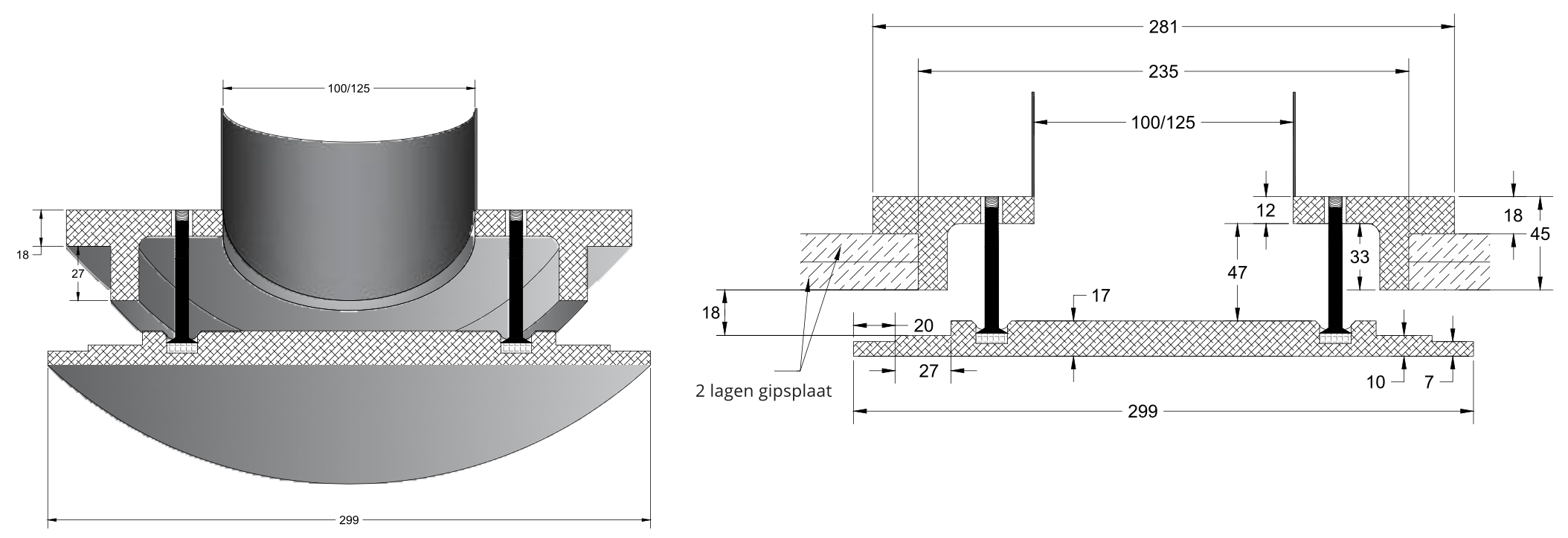 SIDE QUADRAT - einbaufähiges, rahmenloses Designgitter - Ø100mm - ZUFUHR & ABZUG
