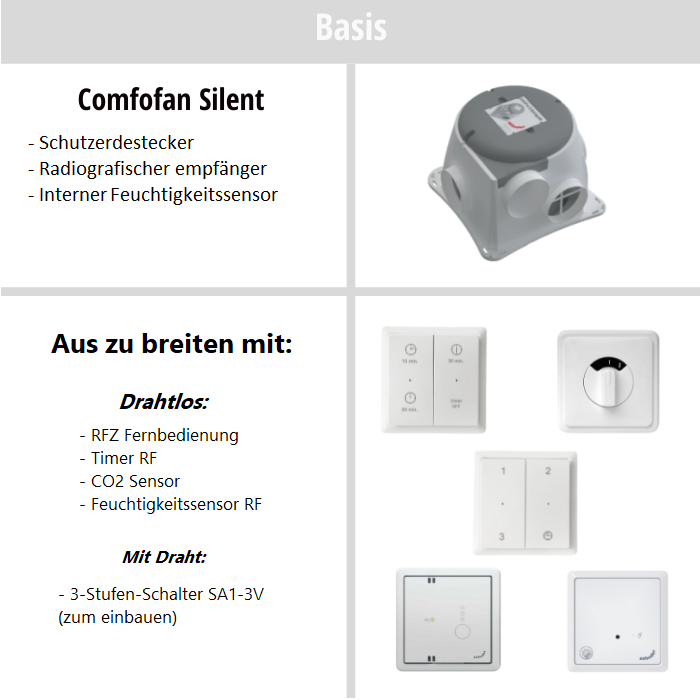 Der Comfofan Silent ist auch Standard mit einem RF-Empfänger ausgestattet. Dies ermöglicht die drahtlose Steuerung aller Silent-Boxen.