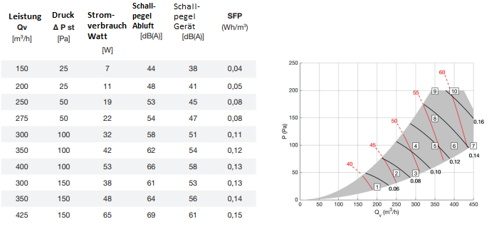 - Leistung bis zu 425 m³/h